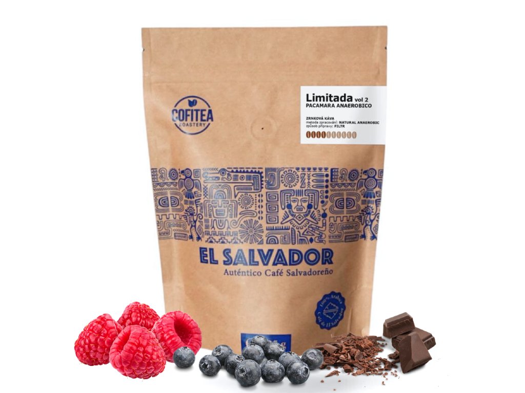 Zrnková káva čerstvě pražená, vysokohorská výběrová 100% arabika, která zrála na sopečných svazích El Salvadoru. Čistá odrůda Pacamara, sběr nad 1400 m n. m. (SHG). Anaerobní fermentace je způsob zpracování kávy probíhající bez přístupu kyslíku, při kterém jsou kávové třešně uzavřeny do tanků či pytlů, odkud se odsaje vzduch. Uvnitř probíhá řízené kvašení, při němž se rozvíjejí specifické druhy mikroorganismů produkujících aromatické látky, které dávají kávě bohaté ovocné a sladké profily. Tato káva se vyznačuje díky anaerobnímu zpracovaní sladkými tóny malin, borůvek a mléčné čokolády.